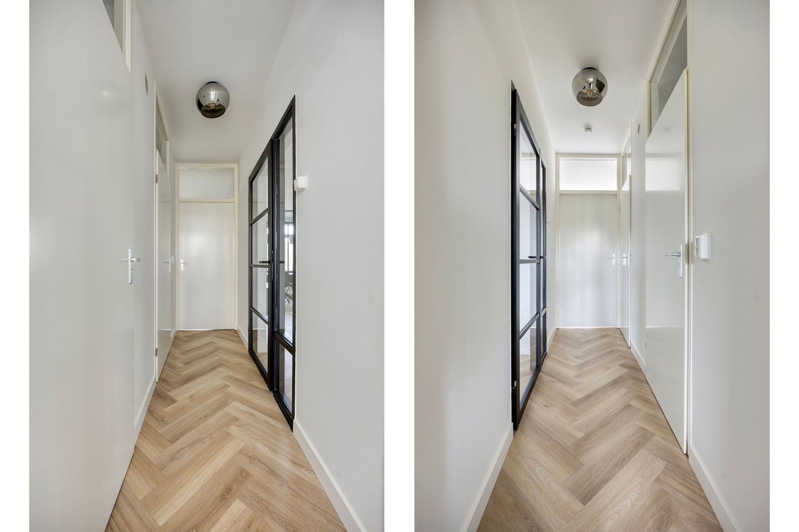 Via de woonkamer bereik je de hal met separaat toilet en toegang tot de overige vertrekken.