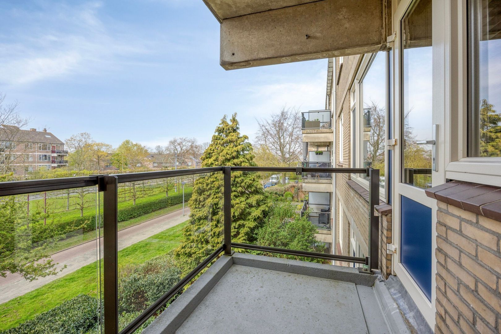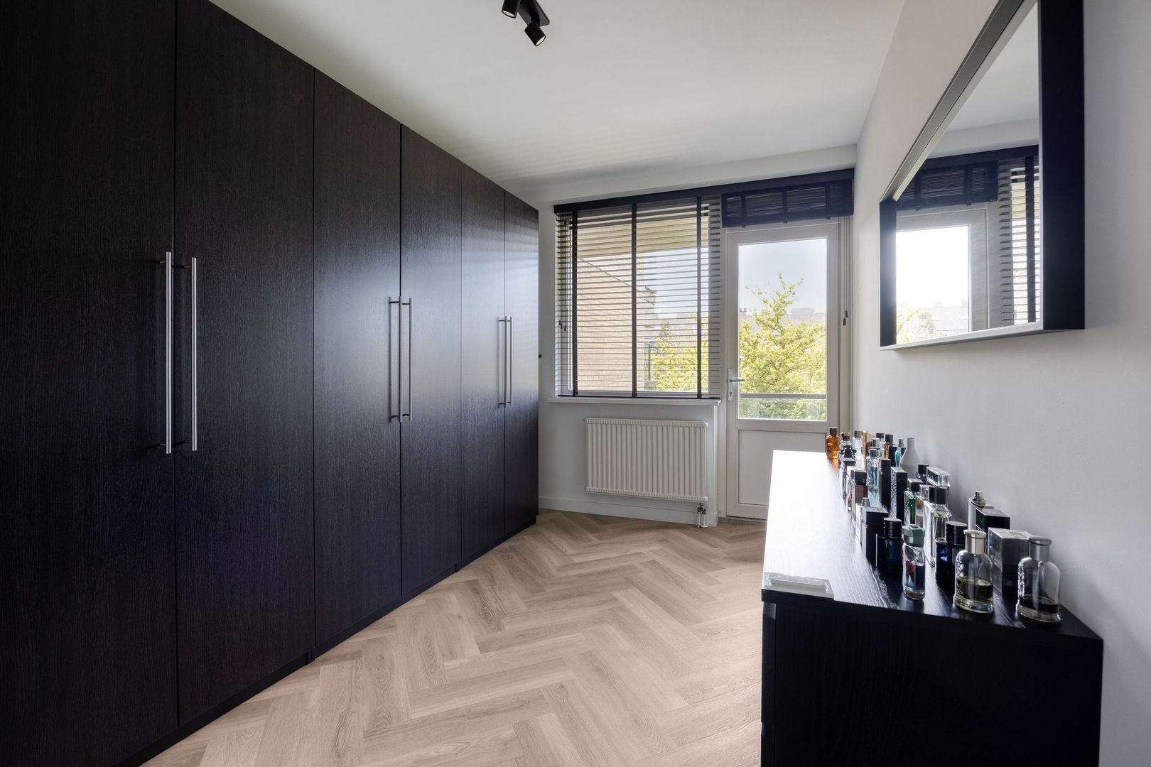 Slaapkamer 3 (ca. 4,37 x 3,04 m) bevindt zich aan de achterzijde en biedt toegang tot het balkon, gelegen op het westen