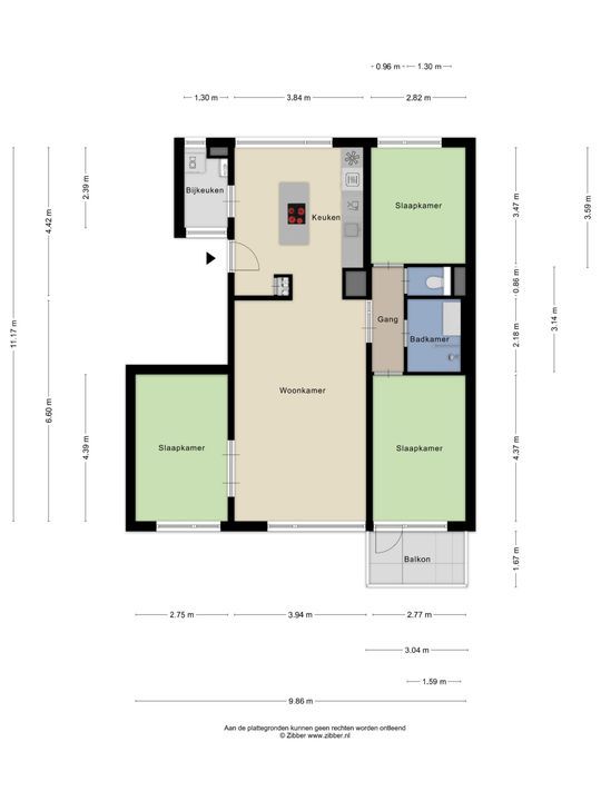 De woning is conform de Branchebrede Meetinstructie (BBMI) opgemeten. De Meetinstructie is bedoeld om een meer eenduidige manier van meten toe te passen voor het geven van een indicatie van de gebruiksoppervlakte. De Meetinstructie sluit verschillen in meetuitkomsten niet volledig uit, door bijvoorbeeld interpretatieverschillen, afrondingen of beperkingen bij het uitvoeren van de meting.